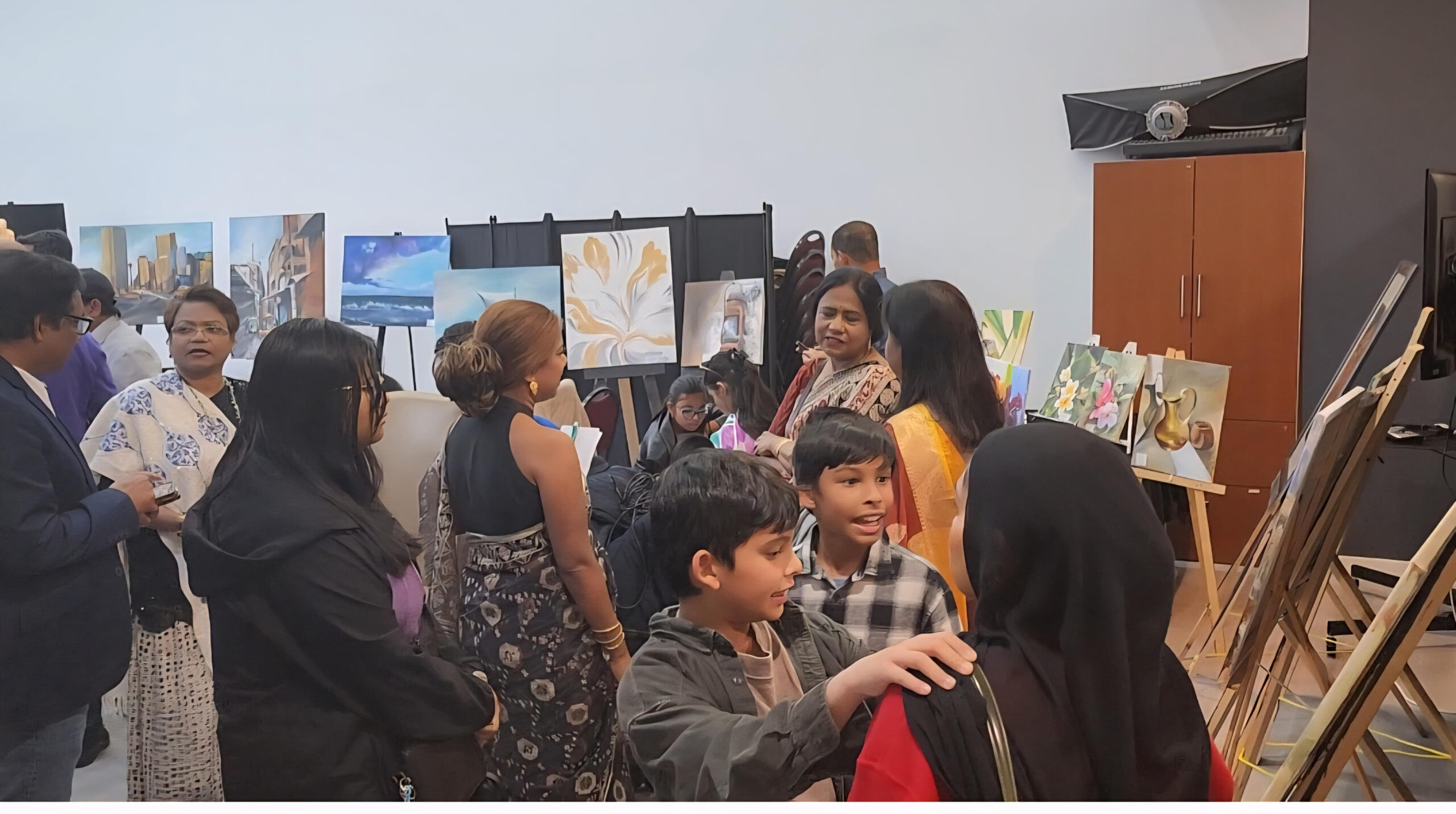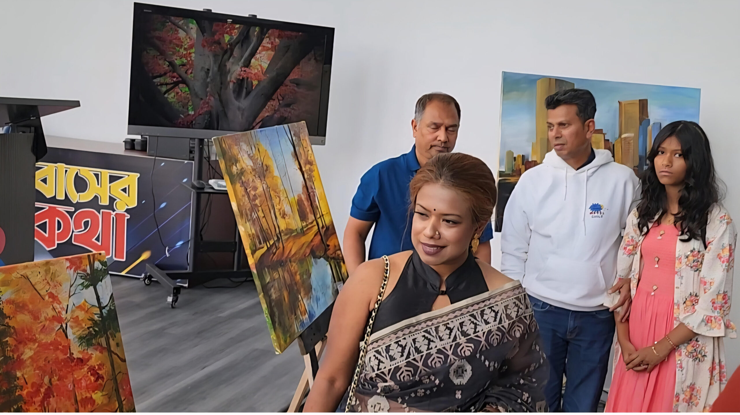 লায়লা নুসরাত, কানাডা প্রতিনিধি :: কানাডার ক্যালগেরির সেন্টার স্ট্রিট এর সেলেসটিয়া প্রোডাকশন হাউজে অনুষ্ঠিত চিত্রশিল্পী জেরিন তাজ এর একক চিত্র প্রদর্শনী দেশি-বিদেশী দর্শনার্থীদের মন কেড়েছে। বিকেল থেকে রাত অবধি এ চিত্র প্রদর্শনীতে প্রবাসীদের মাঝে শৈল্পিক সূজনশীলতার এক অপূর্ব শিল্পকর্ম ফুটে উঠেছে।