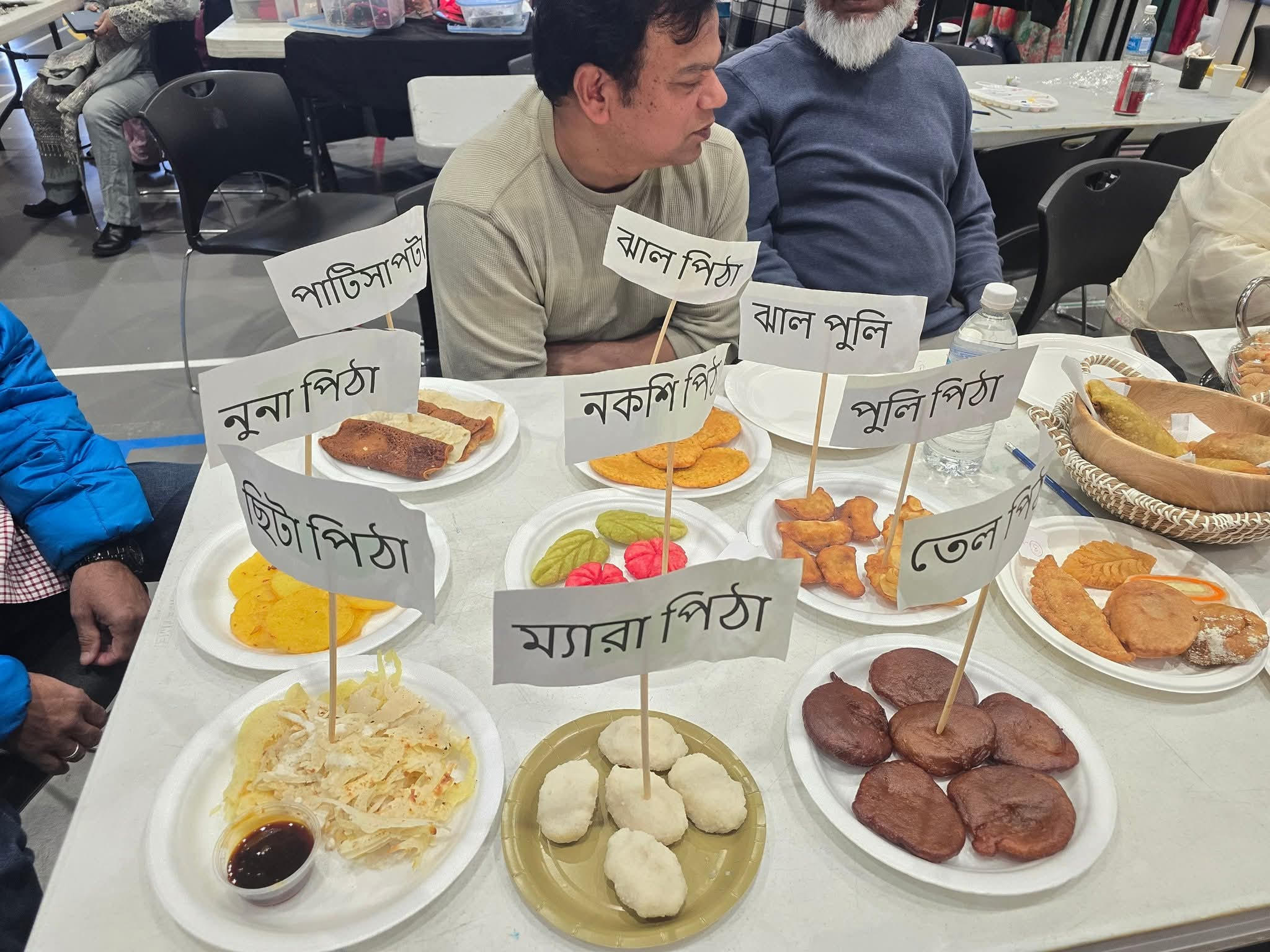 রঙিন আর বর্নিল সাজে সজ্জিত হয়ে প্রবাসী বাঙালি গৃহিণীরা পসরা সাজিয়ে পরিবেশন করে চিতই পিঠা,পাটিসাপ্টা, পুলি এবং গুরা পিঠা, গোলাপ পিঠা,পাকন পিঠা, ভাপা পিঠা এবং হৃদয় হরন পিঠাসহ নানা ধরনের পিঠা।বছরের প্রায় আট মাসই বরফাচ্ছাদিত থাকলেও লোকজ ভাবনা, বাংলার প্রকৃতির ঐতিহ্য ও আনুষ্ঠানিকতায় হৃদয় মন ভরে উঠেছিল প্রবাসী জীবনের আনন্দ জয়গানে। সারাদিন ব্যাপী উৎসবে বাঙালির চিরাচরিত আড্ডা আর শিশু-কিশোর, নারী-পুরুষের পদচারণায় পুরো সেন্টার পরিণত হয়েছিল এক খণ্ড বাংলাদেশে।