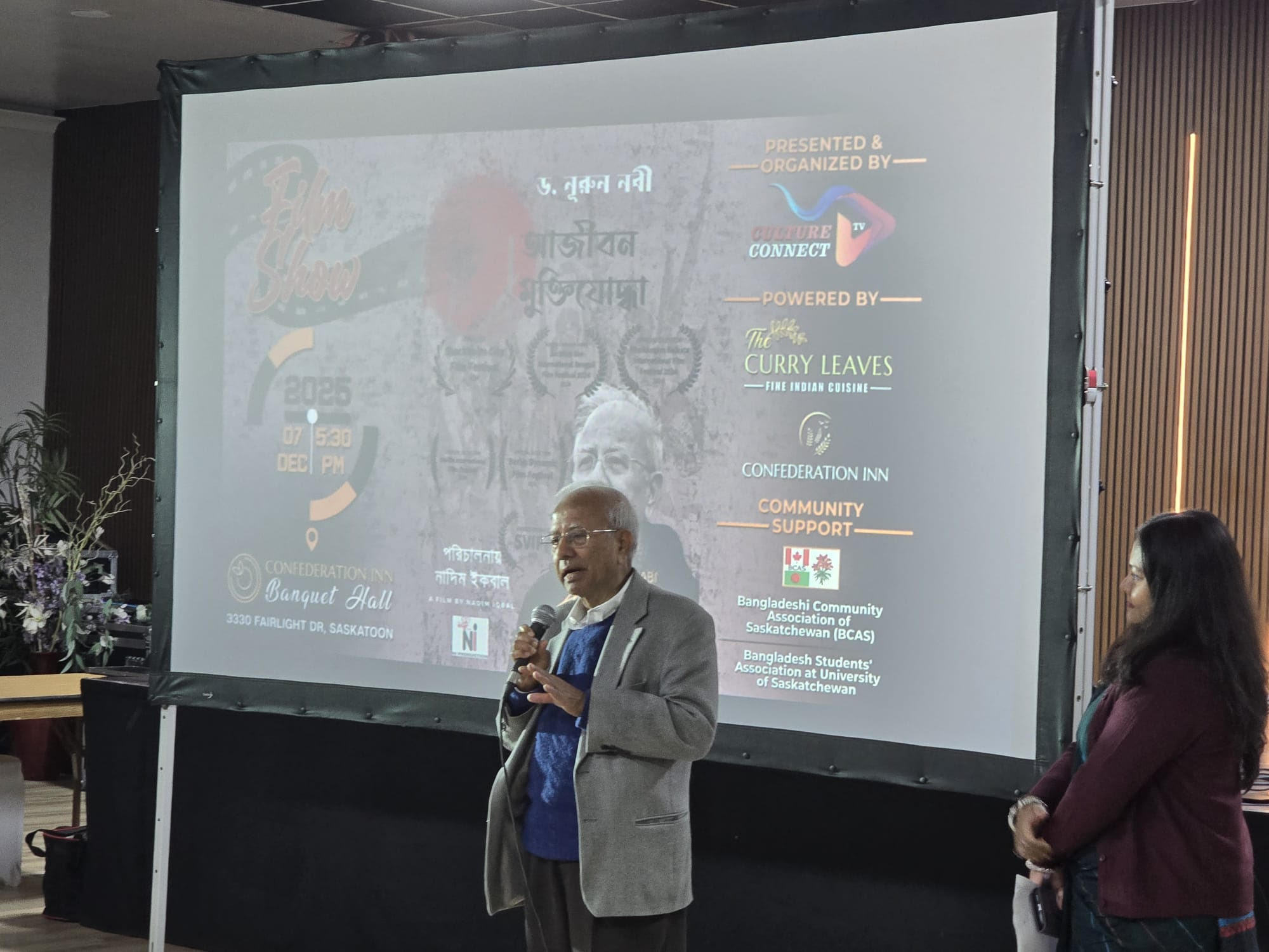 অমিত কুমার উকিল, সাস্কাটুন প্রতিনিধি, কানাডা :: বাংলাদেশের ৫৫তম বিজয় দিবস উপলক্ষ্যে আজ কানাডার স্থানীয় সময় ৭ ডিসেম্বর রবিবার সন্ধ্যা ৭ টায় সাস্কাটুনের কনফেডারেশন ইন হোটেল অডিটোরিয়ামে অনুষ্ঠিত হয়েছে চলচ্চিত্র প্রদর্শনী এবং আলোচনা সভা।