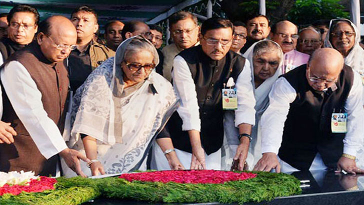 প্রথমে সরকারপ্রধান হিসেবে এবং পরে দলের নেতাকর্মীদের নিয়ে আওয়ামী লীগ সভাপতি হিসেবে বঙ্গবন্ধু ও জাতীয় চার নেতার স্মৃতির প্রতি শ্রদ্ধা জানান শেখ হাসিনা।এর পর জাতির পিতার প্রতিকৃতিতে ফুল দিয়ে শ্রদ্ধা জানায় আওয়ামী লীগের সহযোগী ও অঙ্গ সংগঠনসহ বিভিন্ন সংগঠন।