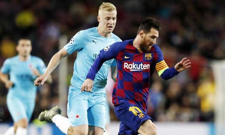 কাম্প নউয়ে মঙ্গলবার রাতে স্লাভিয়া প্রাগের বিপক্ষে খেলতে নামে বার্সা। ম্যাচের শুরু থেকেই একের পর এক আক্রমণে বার্সার রক্ষণভাগ ব্যস্ত রাখে স্লাভিয়ার খেলোয়াড়রা। কিন্তু ভাল ফিনিসারের অভাবে তারা গোলের দেখা পায়নি। প্রথম পাঁচ মিনিটে দুবার বার্সেলোনার রক্ষণে ভীতি ছড়ালের গোল করতে ব্যর্থ হয় স্লাভিয়া। চতুর্দশ মিনিটে আক্রমণে উঠতে যাওয়া ওলাইয়াঙ্কাকে পেছন থেকে টেনে ধরে হলুদ কার্ড দেখেন পিকে। ৩৪তম মিনিটে ম্যাচে ডি-বক্সের বাইরে থেকে নেওয়া লিওনেল মেসির শট ক্রসবারে লেগে ফিরে আসে।