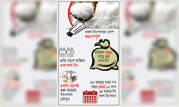 এছাড়া সারাদেশে বিভিন্ন লবণ কোম্পানির ডিলার, পাইকারি ও খুচরা বিক্রেতাদের কাছেও প্রয়োজনের অতিরিক্ত লবণ মজুদ রয়েছে। শিল্প মন্ত্রণালয় এক সংবাদ বিজ্ঞপ্তিতে জানায়, দেশে প্রতি মাসে ভোজ্য লবণের চাহিদা ১ লাখ টন। অথচ মজুদই আছে সাড়ে ৬ লাখ টন। এছাড়া চলতি নভেম্বর মাস থেকে লবণের উৎপাদন মৌসুম শুরু হয়েছে। এরই মধ্যে কক্সবাজার জেলার কুতুবদিয়া ও মহেশখালী উপজেলায় উৎপাদিত নতুন লবণও বাজারে আসতে শুরু করেছে। এ হিসাবে দেশে লবণের কোনো ধরনের ঘাটতি বা সংকট হওয়ার প্রশ্নই ওঠে না।
