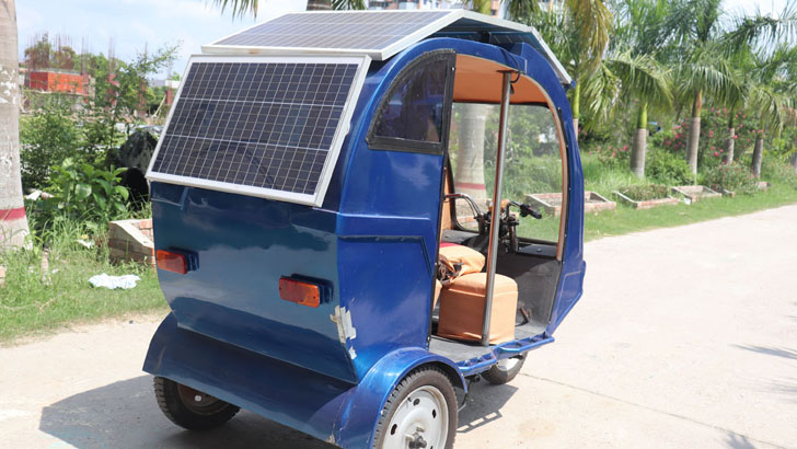 বাংলানিউজসিএ ডেস্ক :: এক থেকে দেড় লাখ টাকা ব্যয়ে সৌরচালিত গাড়ি উদ্ভাবন করেছেন যশোর বিজ্ঞান ও প্রযুক্তি বিশ্ববিদ্যালয়ের (যবিপ্রবি) পদার্থবিজ্ঞান বিভাগের সহকারী অধ্যাপক ড. মো. হুমায়ুন কবির।এই গাড়িটির মানোন্নয়ন করে বাণিজ্যিকভাবেও এর ব্যবহার সম্ভব। এই গাড়ির সোলার প্যানেল ছাড়া সবকিছুই দেশীয় বাজার থেকে সংগ্রহ করা হয়েছে এবং স্থানীয় একটি মোটর ওয়ার্কশপে এটি তৈরি করা হয়েছে।