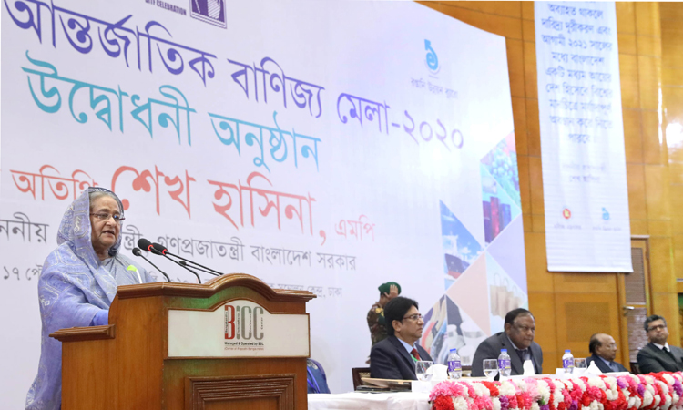 প্রধানমন্ত্রী শেখ হাসিনা আজ বুধবার সকালে রাজধানীর বঙ্গবন্ধু আন্তর্জাতিক সম্মেলন কেন্দ্রে মাসব্যাপী ২৫তম ঢাকা আন্তর্জাতিক বাণিজ্য মেলা-২০২০’র উদ্বোধনী অনুষ্ঠানে প্রধান অতিথির ভাষণে একথা বলেন।প্রধানমন্ত্রী একই সঙ্গে লাইট ইঞ্জিনিয়ারিং শিল্প খাতের বিকাশে যথাযথ পদক্ষেপ গ্রহণের মাধ্যমে এর রপ্তানি সম্ভাবনা বৃদ্ধিতে ভূমিকা রাখারও জন্য সংশ্লিষ্ট মহলের প্রতি আহ্বান জানান।