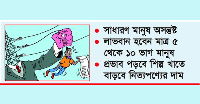 বাংলানিউজসিএ ডেস্ক :: প্রয়োজনে প্রতিবছর একাধিকবার বিদ্যুৎ-জ্বালানির দাম (ট্যারিফ ভ্যালু) পরিবর্তন অর্থাৎ কমাতে বা বাড়াতে পারবে বাংলাদেশ এনার্জি রেগুলেটরি কমিশন (বিইআরসি)। এই বিধান রেখে ‘বাংলাদেশ এনার্জি রেগুলেটরি কমিশন (সংশোধন) আইন ২০১৯’-এর খসড়ার নীতিগত ও চূড়ান্ত অনুমোদন দিয়েছে মন্ত্রিসভা। মন্ত্রিসভার এই সিদ্ধান্তে অসন্তুষ্টি বিরাজ করছে সাধারণ মানুষের মাঝে। তারা মনে করছেন বছরে বারবার বিদ্যুতের দাম বাড়লে-বাড়ালে পরিবহন, পণ্য উৎপাদন থেকে শুরু করে সব খাতে ব্যয় বাড়বে। এই বাড়তি ব্যয়ের প্রতিটি অর্থ আবার ব্যবসায়ীরা জনগণের কাছ থেকেই পণ্য ও সেবার দাম বাড়িয়ে আদায় করবেন। ফলে শেষ পর্যন্ত বিদ্যুতের মূল্যবৃদ্ধির মূল্য সাধারণ মানুষকেই দিতে হবে। ৮০ থেকে ৯০ ভাগ মানুষ এতে ক্ষতিগ্রস্ত হবেন আর লাভবান হবেন মাত্র ৫ থেকে ১০ ভাগ মানুষ।
