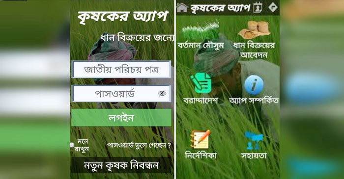 এদিকে, কৃষকের অ্যাপটি মূলত স্মার্টফোনে ব্যবহারোপযোগী একটি অ্যাপ্লিকেশন/সফট্ওয়্যার। এটি ডিজিটাল ধান/খাদ্যশস্য সংগ্রহ ব্যবস্থাপনা সিস্টেমের একটি গুরুত্বপূর্ণ উপাদান যেটি শুধুমাত্র কৃষকরা ব্যবহার করবে। কৃষক যেনো আঙ্গুলের ছোঁয়ায় সরকারি সেবা পেতে পারে, সে লক্ষ্যকে সামনে রেখেই এই অ্যাপ্লিকেশন/সফটওয়্যারটি তৈরি করা হয়েছে। এটি ব্যবহার করে কৃষক ঘরে বসেই সরকারের কাছে ধান বিক্রয়ের আবেদন করতে পারবে।