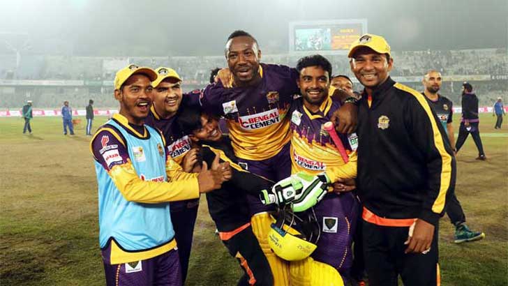 খুলনা টাইগার্স: ২০ ওভারে ১৪৯/৮ (শামসুর রহমান ৫২, রাইলি রুশো ৩৭, মুশফিক ২১; মোহাম্মদ ইরফান ২/১৮, কামরুল ইসলাম ২/২৯, আন্দ্রে রাসেল ২/৩২)।