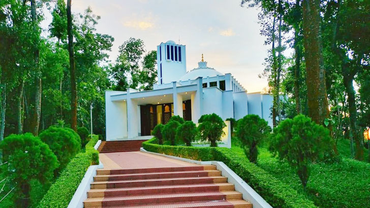শতাধিক সিঁড়ি। এবারে আমাদের অনুরোধ করা হল, নগ্ন পায়ে সিঁড়ি বেয়ে যাওয়ার জন্য। আমরা নগ্ন পায়ে এগিয়ে যেতে লাগলাম। চারদিকে সবুজ পাহাড়ে ঘেরা নৈসর্গিক পরিবেশ। রয়েছে আবার সারি সারি চা বাগান।