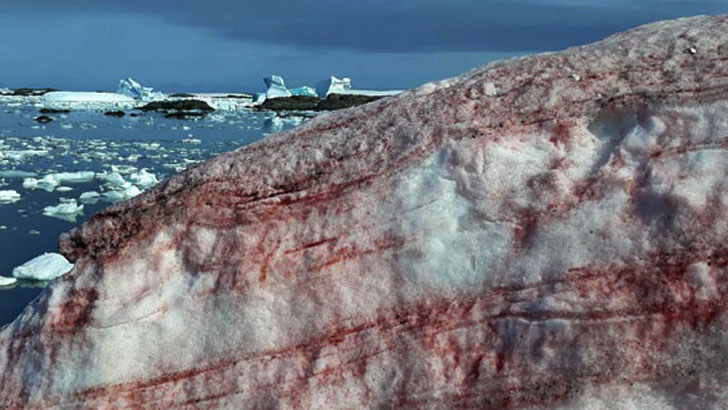 অ্যান্টার্কটিকার উত্তরের অংশে দেখা গেছে, ছোপ ছোপ তাজা রক্তমাখা বরফ। যাকে ‘ব্লাড স্নো’ বলে চিহ্নিত করা হচ্ছে। গত কয়েক সপ্তাহ ধরে এ ধরনের বরফ দেখা যাচ্ছে অ্যান্টার্কটিকার গ্যালিন্ডেজ আইল্যান্ডে। তবে এতে ভয় পাওয়ার কিছু নেই। এটি আসলে এক প্রাকৃতিক কারণেই হয়েছে। ‘ক্ল্যামাইডোমোনাস নিভালিস’ নামে এক ধরনের শ্যাওলার জন্যই এই লাল রঙ দেখা যাচ্ছে বরফে।