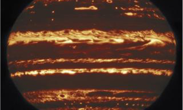 বাংলানিউজসিএ ডেস্ক :: সৌরজগতের সবচেয়ে বড় গ্রহ বৃহস্পতির অসাধারণ কিছু নতুন ছবি পেয়েছেন জ্যোতির্বিজ্ঞানীরা। সে সব ছবি প্রকাশ করা হয়েছে।বিবিসির খবরে বলা হয়, সে সব ছবিতে গ্রহটির বিশাল গ্যাস স্তরের নীচে উষ্ণ ঝলমলে অঞ্চলগুলো ফুটে উঠেছে। যুক্তরাষ্ট্রের হাওয়াই দ্বীপে অবস্থিত জেমিনি নর্থ টেলিস্কোপের ইনফ্রারেড থেকে এসব ছবি পাওয়া গেছে।পৃথিবীতে থেকে বৃহস্পতি গ্রহের তোলা এটাই সবচেয়ে সূক্ষ্ম পর্যবেক্ষণ।