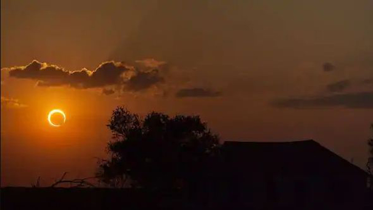 বাংলানিউজসিএ ডেস্ক :: বছরের প্রথম বলয়গ্রাস সূর্যগ্রহণ দেখা যাবে আজ। এদিন সূর্যকে ঢেকে দেবে চাঁদ। আর চাঁদের আড়াল থেকে সূর্যের যে অংশটি দেখা যাবে, তাকে অনেকটা আগুনের আংটির মতো দেখতে লাগবে।গ্রহণের সময় আকাশে যখন আগুনের চাকা দেখা যায় বলে একে বলয়গ্রাস সূর্যগ্রহণ বলা হয়।