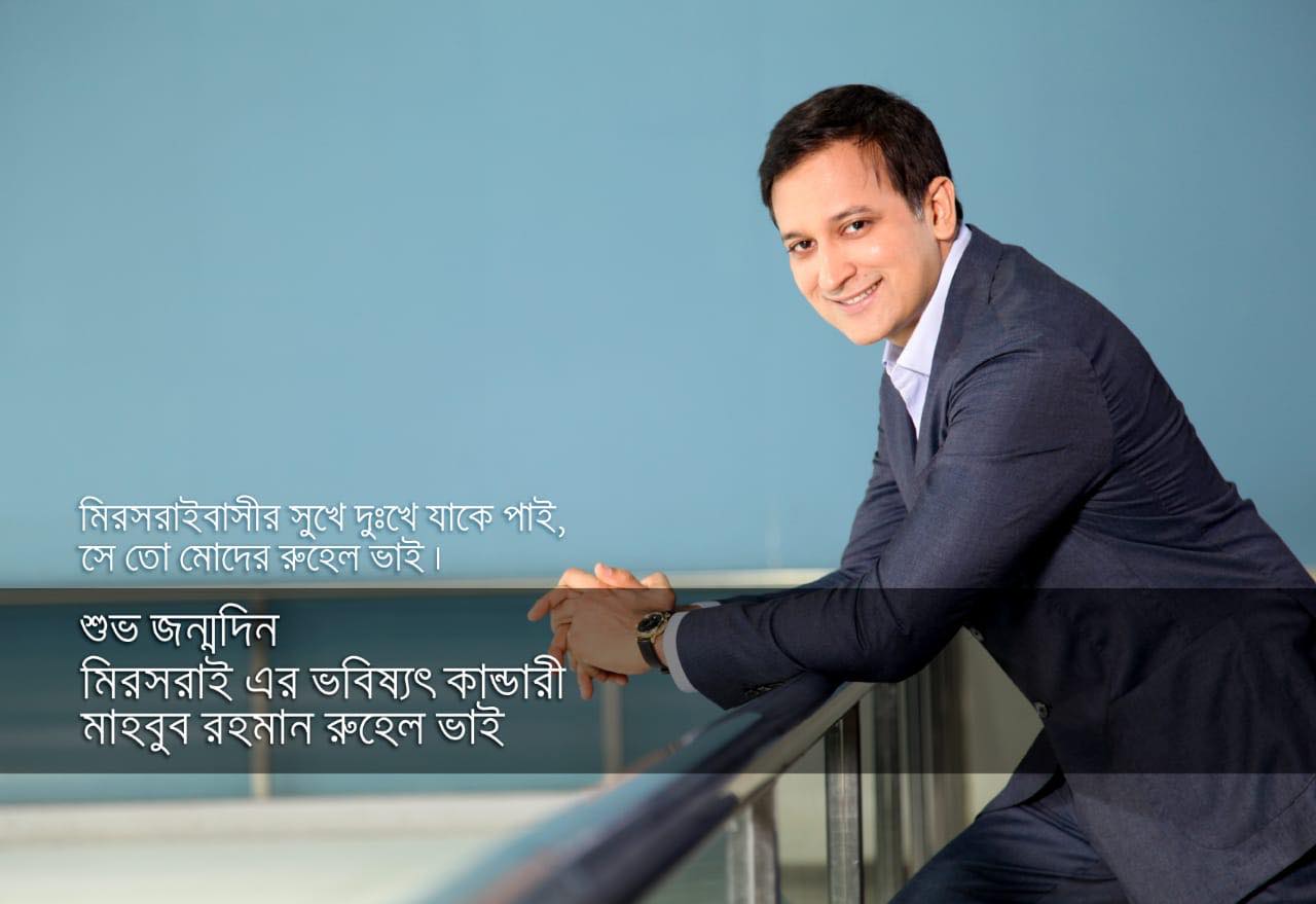 বাংলানিউজসিএ ডেস্ক :: ৮ জুলাই চট্টগ্রাম এর আওয়ামী লীগ নেতা,শিল্পোদ্যোক্তা মাহবুব রহমান রুহেল এর ৫০ তম জন্মদিনকে ঘিরে উচ্ছ্বসিত নেতাকর্মী ,ভক্ত সমর্থকরা সামাজিক যোগাযোগ মাধ্যমে মধ্যরাত হতে শুভেচ্ছা জানাতে থাকেন। হাজারো শুভাকাঙ্ক্ষী ,কর্মী সমর্থকদের লেখায় তরুণ সমাজে রুহেলএর ব্যাপক প্রভাবের চিত্র প্রতিফলিত হয়ে উঠে। কর্মী সমর্থকদের লেখায়,স্মৃতিচারণে প্রত্যাশায় মাহবুব রহমান রুহেল এর নানান দিক উঠে আসে। উঠে আসে মিরসরাইকে ঘিরে রুহেলের কর্মকান্ড,স্বপ্ন ,ভবিষ্যত কর্মপরিকল্পনা সহ নানান দিক।