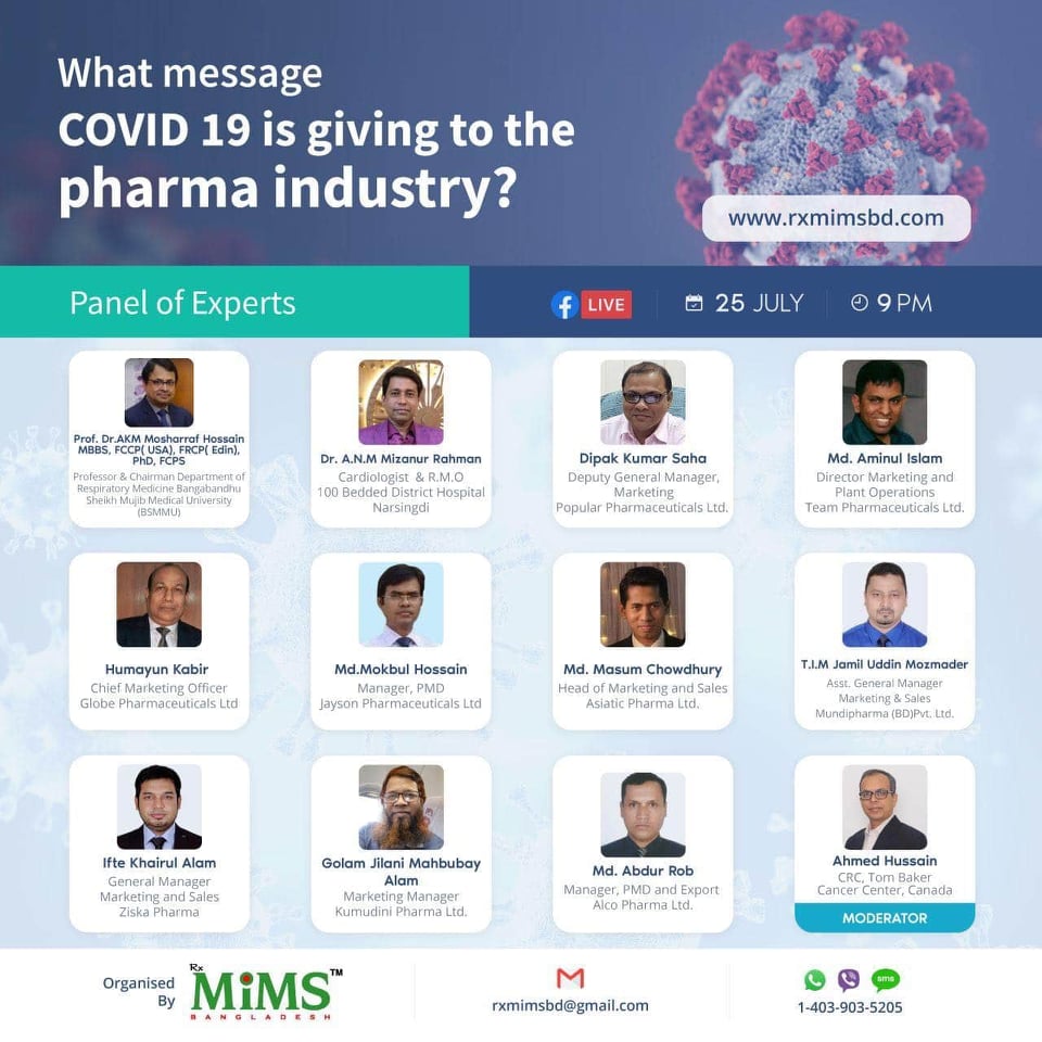 আর এই লক্ষ্যে কানাডার ক্যালগেরির টমবেকার ক্যানসার সেন্টারের ক্লিনিক্যাল রিসার্চ কো-অর্ডিনেটর এবং আর এক্স মীমস এর পরিচালক আহমেদ হোসেন শাহিনের সঞ্চালনায় “কোভিড-১৯ ফার্মাসিউটিক্যালস ইন্ডাস্ট্রিকে কি মেসেজ দিল” এর উপর ভিত্তি করে কানাডার ক্যালগেরিতে আগামী ২৫ শে জুলাই শনিবার বাংলাদেশ সময় রাত ৯টা এবং কানাডার সময় শনিবার সকাল ৯ টায় অনুষ্ঠিত হতে যাচ্ছে এক ভার্চুয়াল আলোচনা।