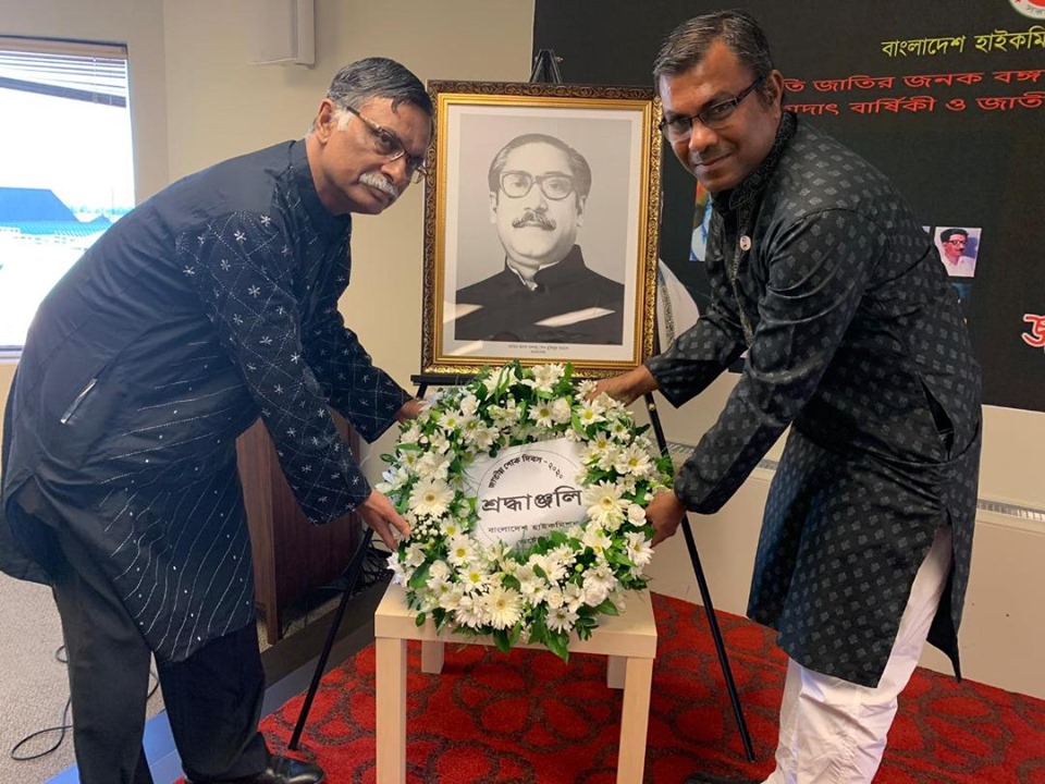 এ দিবসটি উপলক্ষে মহামান্য রাষ্ট্রপতি, মাননীয় প্রধানমন্ত্রী, মাননীয় পররাষ্ট্র মন্ত্রী ও মাননীয় পররাষ্ট্র প্রতিমন্ত্রীর বাণী পাঠ করে শােনান যথাক্রমে জনাব চিরঞ্জীব সরকার, উপহাইকমিশনার, জনাব সাখাওয়াৎ হােসেন, কাউন্সেলর, জনাব দেওয়ান হােসেনে আইয়ুব, কাউন্সেলর ও জনাব শাকিল মাহমুদ, কাউন্সেলর । বাণীপাঠের পর বঙ্গবন্ধুর সংগ্রামী জীবনের উপর নির্মিত প্রামাণ্য চিত্র প্রদর্শন করা হয়।এ পর্যায়ে একটি উন্মুক্ত আলােচনা অনুষ্ঠানের আয়ােজন করা হয়। এ আলােচনা অনুষ্ঠানে আমন্ত্রিত প্রবাসী বাংলাদেশীগণসহ মাননীয় হাইকমিশনার মহােদয় বক্তব্য প্রদান করেন।