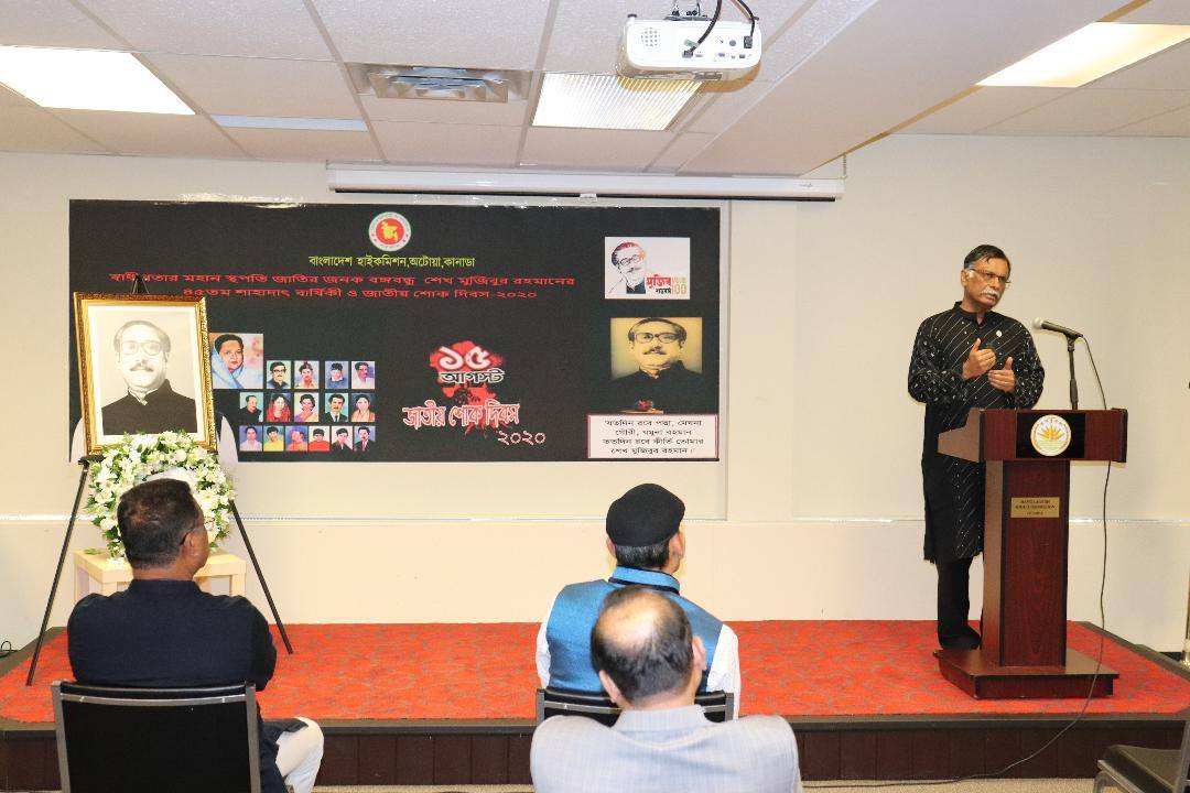 দিবসের শুরুতে সকাল ৯.১৫ ঘটিকায় বাংলাদেশ হাউজে মান্যবর হাইকমিশনার মহােদয় দূতাবাসের সকল সদস্যদের নিয়ে জাতীয় পতাকা অর্ধনমিত করেন। এ সময় জাতীয় সংগীত বাজানাে হয়। পরবর্তীতে বিকাল ৫.০০ ঘটিকায় দিবসের দ্বিতীয় কার্যক্রম শুরু হয়। উক্ত অনুষ্ঠানে কানাডা প্রবাসী বাংলাদেশীগণ যােগদান করেন। উল্লেখ্য, কোভিড-১৯ মহামরীর প্রেক্ষাপটে স্বাগতিক দেশের আরােপিত স্বাস্থ্যবিধি মেনে হাইকমিশন এই দিবস উদযাপন করে।