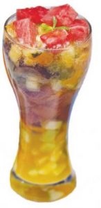 উপকরণ: সবুজ আপেল (কিউব করে কাটা) এক কাপ, সবুজ আঙুর (অর্ধেক করে কেটে নিতে হবে) আধা কাপ, কালো আঙুর অথবা লাল আঙুর (অর্ধেক করে কেটে নিতে হবে) আধা কাপ, পাকা আম (কিউব করে কাটা) ১ কাপ, তরমুজ (কিউব করে কাটা) পরিমাণমতো, কমলা খোসা ছাড়িয়ে কোষগুলো খুলে নিতে হবে অাঁশের ভেতর থেকে, ট্যাং পানিতে গুলে নেওয়া ৫০০ এমএল, চায়ের লিকার এক কাপ, মাল্টা বা কমলার জুস ৫০০ এমএল, স্বচ্ছ সোডাযুক্ত কোমল পানীয় এক লিটার, চিনি সিকি কাপ, পাকা আম (কিউব করে কাটা) ১ কাপ, পুদিনাপাতা সাজানোর জন্য।