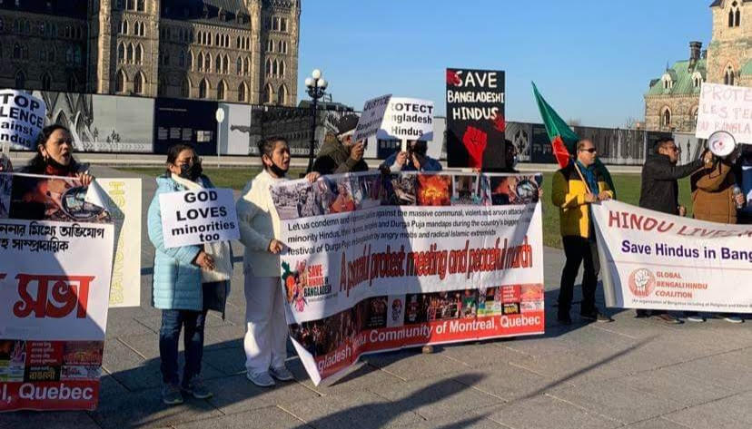 আহসান রাজীব বুলবুল, প্রধান সম্পাদক, প্রবাস বাংলা ভয়েস ::‌ বাংলাদেশ সনাতন ধর্মাবলম্বী জনগোষ্ঠীর উপর হামলা, নির্যাতন, হত্যা, ধর্ষণ, ধর্মীয় উপসানালয় মন্দিরে, বাড়িঘরে, ব্যবসা প্রতিষ্ঠানে এমন কি গ্রামের পর গ্রাম হিন্দু সম্প্রদায়ের অগ্নিসংযোগ, লুটপাটসহ সন্ত্রাসের বিরুদ্ধে কানাডার বিভিন্ন শহরে মিছিল, মানববন্ধন, র‌্যালি, প্রতিবাদ সভার ধারাবাহিকতায় কানাডার স্থানীয় সময় সোমবার