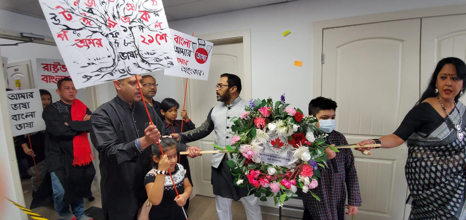 এ সময় আলবার্টা গভনমেন্টের পরিবহন মন্ত্রী রাজন শাওনি সহ ক্যালগেরির বিভিন্ন সংগঠনের নেতৃবৃন্দ বাংলাদেশ সেন্টারে অস্থায়ীভাবে নির্মিত শহীদ মিনারের বেদীতে পুষ্পস্তবক অর্পণ করে ও শহীদদের প্রতি গভীর শ্রদ্ধা নিবেদন করেন।