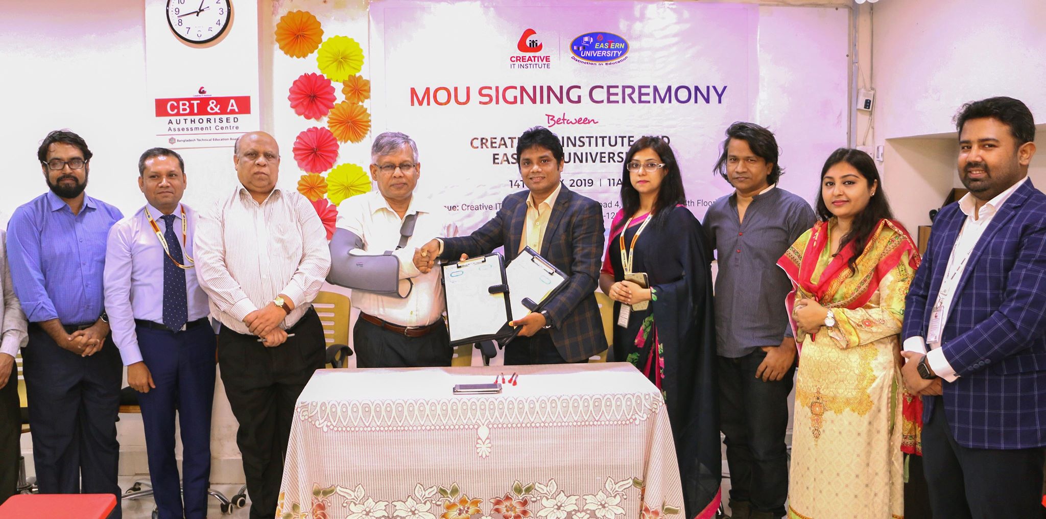 আজকের এই সমঝোতা স্মারক স্বাক্ষর প্রোগ্রামে উপস্থিত ছিলেন ইস্টার্ন ইউনিভার্সিটির সম্মানিত ভাইস চ্যান্সেলর প্রফেসর ডঃ শহীদ আখতার হোসাইন, কোষাধ্যক্ষ জনাব এ. এস মাহমুদসহ অন্যান্য। ক্রিয়েটিভ আইটির পক্ষ থেকে অংশ নেন প্রধান নির্বাহী কর্মকর্তা জনাব মনির হোসেন। এই সমঝোতা স্মারক ডিজিটাল বাংলাদেশকে উপহার দিবে আরও কিছু অভিজ্ঞ প্রযুক্তি দক্ষ কারিগর ও আগামীর উদ্যোক্তা এই সকলের প্রত্যাশা।