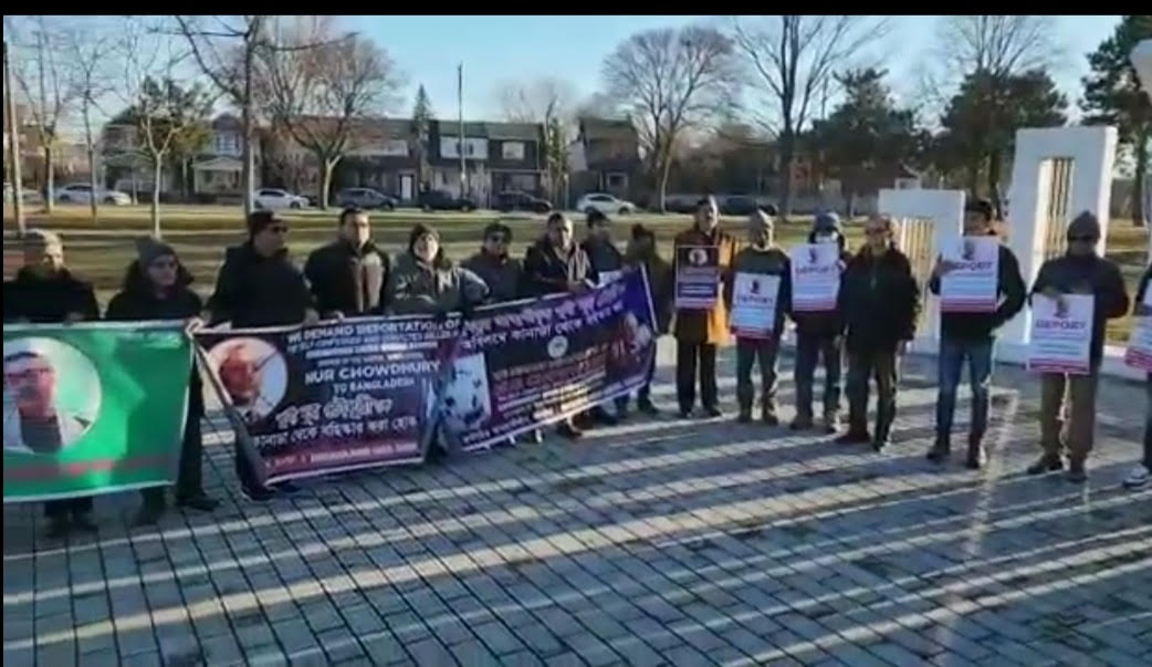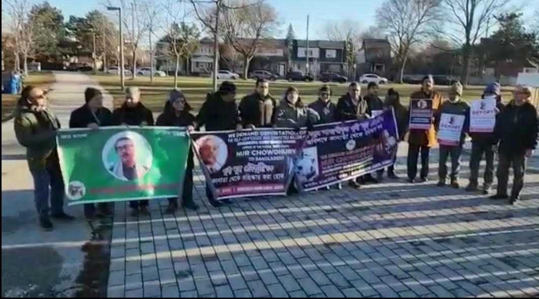 আহসান রাজীব বুলবুল, প্রধান সম্পাদক, প্রবাস বাংলা ভয়েস :: কানাডায় অন্টারিও আওয়ামী লীগের উদ্যোগে প্রচন্ড বৈরী আবহাওয়া কে উপেক্ষা করে কানাডার স্থানীয় সময় শনিবার (১১ই ফেব্রুয়ারি) টরেন্টোর কেন্দ্রীয় শহীদ মিনারের সামনে বঙ্গবন্ধুর খুনি নুর চৌধুরীকে দেশে ফেরতের দাবিতে মানববন্ধন করা হয়।ব্যানার ফেস্টুন সম্বলিত পোষ্টার নিয়ে এ সময় কানাডা সরকারের কাছে বঙ্গবন্ধুর আত্মস্মিকৃত খুনি নূর চৌধুরীকে দেশে ফেরত পাঠানোর জোর দাবি জানানো হয়।