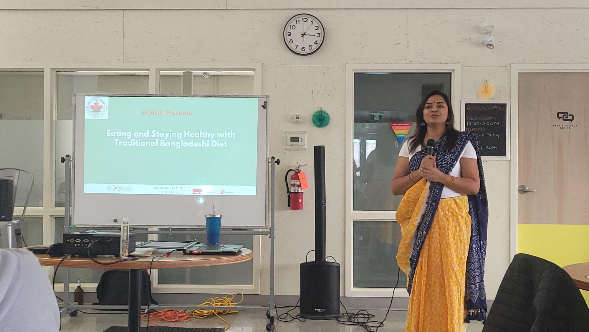 আহসান রাজীব বুলবুল, প্রধান সম্পাদক, প্রবাস বাংলা ভয়েস ::‌ “স্বাস্থ্যই সকল সুখের মূল এবং দৈনন্দিন খাদ্যাভাসে স্বাস্থ্যকর খাবার” স্লোগানকে সামনে রেখে কানাডার ক্যালগেরিতে বাংলাদেশ কানাডা অ্যাসোসিয়েশন অফ ক্যালগেরির আয়োজনে এলেক্স কমিউনিটি ফুড সেন্টারে এক সেমিনার অনুষ্ঠিত হয়েছে। সেমিনার টি বাস্তবায়নে সক্রিয়ভাবে সহযোগিতা করে এলেক্স কমিউনিটি ফুড সেন্টার।সেমিনারে মূল বক্তব্য তুলে ধরেন বাংলাদেশ কানাডা এসোসিয়েশন অফ ক্যালগেরি’র হেল্থ অ্যান্ড ওয়েলথনেস সেক্রেটারি ঝুমুর দেবনাথ।