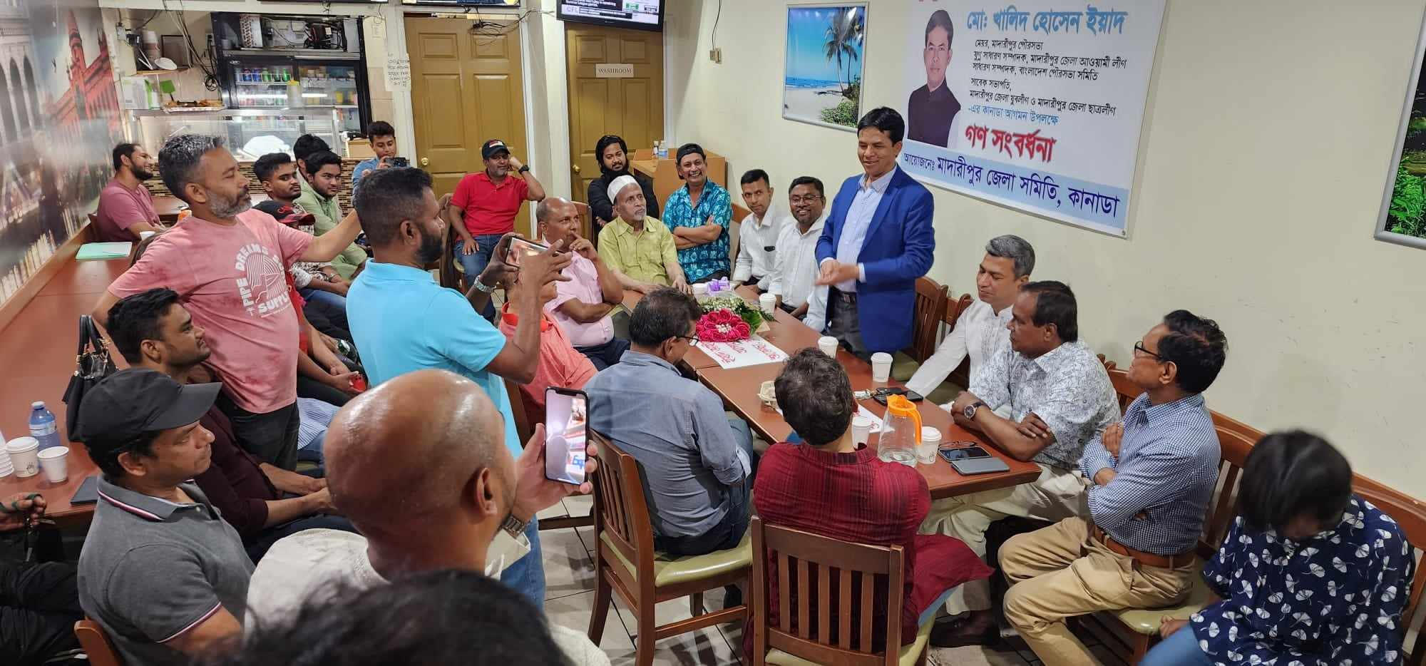 আহসান রাজীব বুলবুল, প্রধান সম্পাদক, প্রবাস বাংলা ভয়েস :: কানাডার স্থানীয় সময় সোমবার টরেন্টোর ডেনফোর্থের স্থানীয় মক্কা রেষ্টুরেন্টে কানাডায় মাদারীপুর সমিতি এক গণ সংবর্ধনার আয়োজন করে মাদারীপুর জেলার মেয়র জননেতা মো: খালিদ হোসেন ইয়াদের সৈজন্যে।