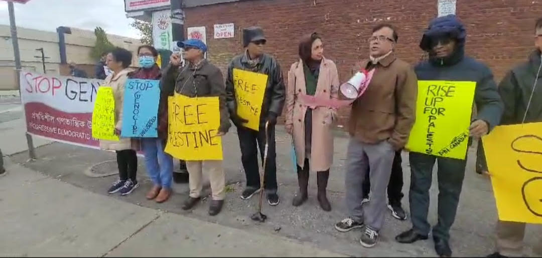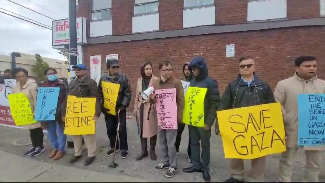 আহসান রাজীব বুলবুল, প্রধান সম্পাদক, প্রবাস বাংলা ভয়েস :: কানাডার টরেন্টোতে আজ শনিবার স্থানীয় সময়ে গাজায় গণহত্যার প্রতিবাদে টরন্টোর ডেনফোর্থের বাংলা টাউনে বাংলাদেশি কানাডীয়ানরা প্রতিবাদ সমাবেশ করেছে।