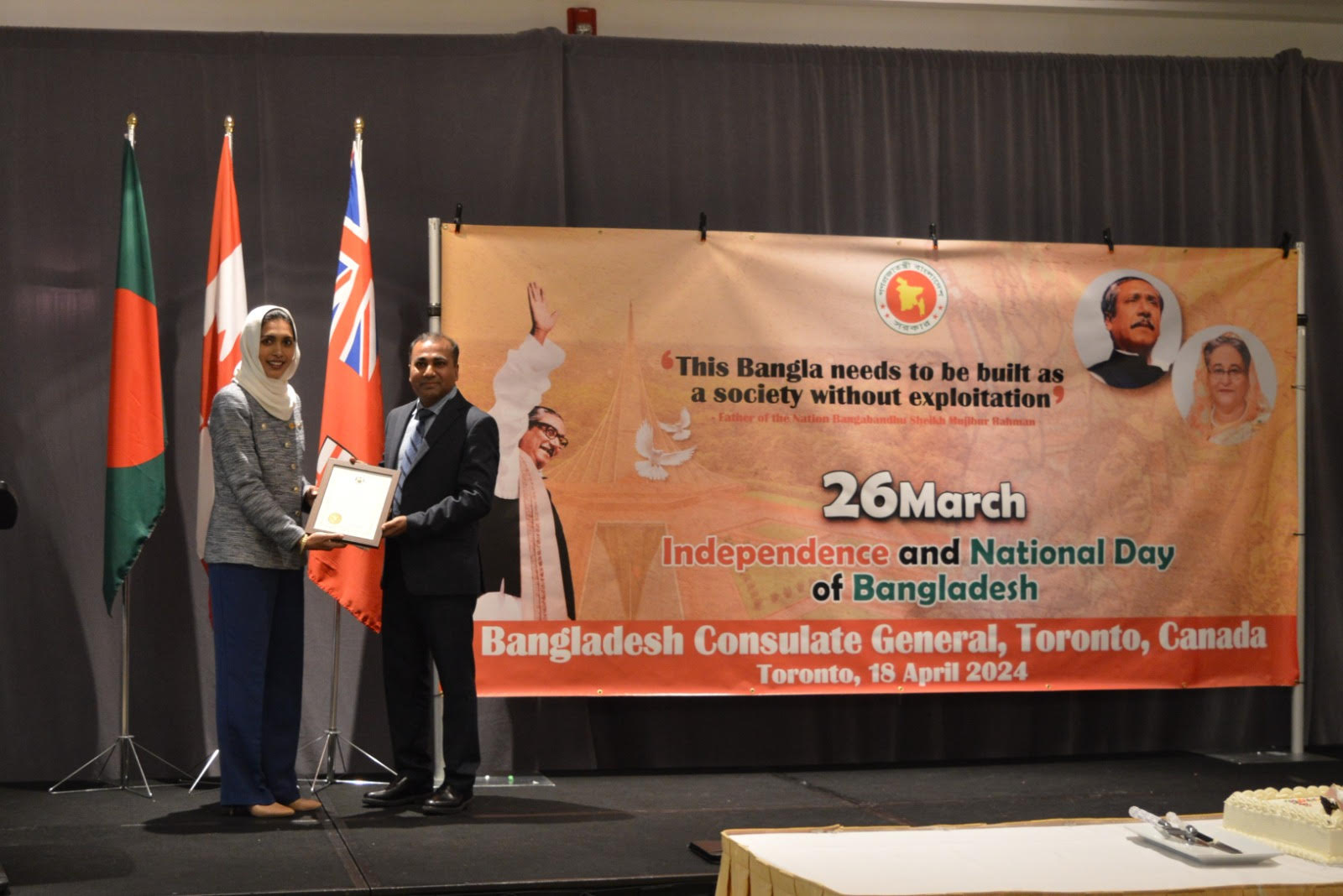 আহসান রাজীব বুলবুল, প্রধান সম্পাদক, প্রবাস বাংলা ভয়েস :: মহান স্বাধীনতা ও জাতীয় দিবস উদযাপনের অংশ হিসেবে কানাডার টরেন্টোতে মাউন্টব্যাটেন স্যালন চেলসিয়া হোটেলে বিদেশি কূটনৈতিক, সরকারের উচ্চপদস্থ কর্মকর্তা, টরন্টোতে বসবাসরত প্রবাসী বাংলাদেশী ও নেতৃবৃন্দ, সাংবাদিক এবং ছাত্রছাত্রীদের অংশগ্রহণে আনন্দঘণ পরিবেশে এক বর্ণাঢ্য রিসিপশন এবং অনুষ্ঠানের আয়োজন করা হয়।
