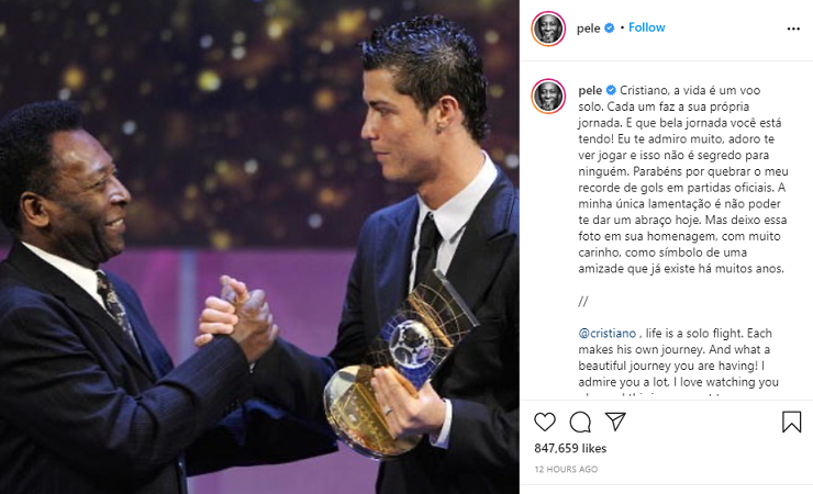 রোনালদোকে জড়িয়ে ধরতে না পারার আক্ষেপ পেলের