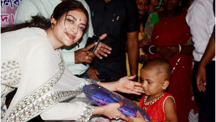 দরিদ্র মানুষের মুখে হাসি ফোটাচ্ছে নুসরাতের শীতবস্ত্র